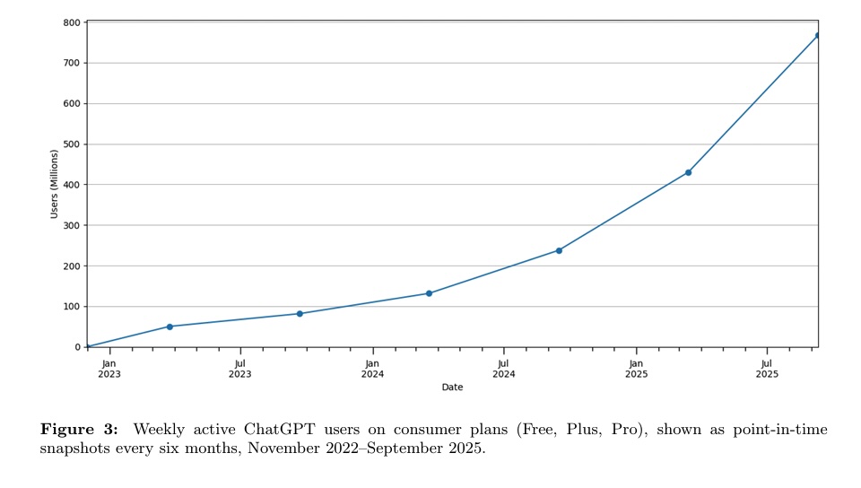 - 700 millions d’utilisateurs actifs hebdomadaires en juillet 2025, soit environ 10 % de la population adulte mondiale.